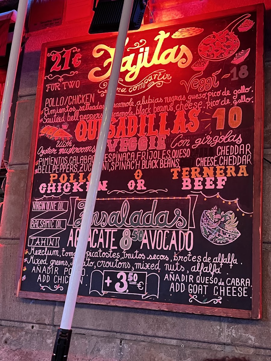Carabela Cafè offers a menu that embraces casual, satisfying Tex-Mex flavors perfect for relaxed gatherings and everyday enjoyment. Whether you’re stopping by for a laid-back lunch, an afternoon refreshment, or a lively evening out, the menu is designed to complement the inviting atmosphere of this vibrant spot in Ciutat Vella.